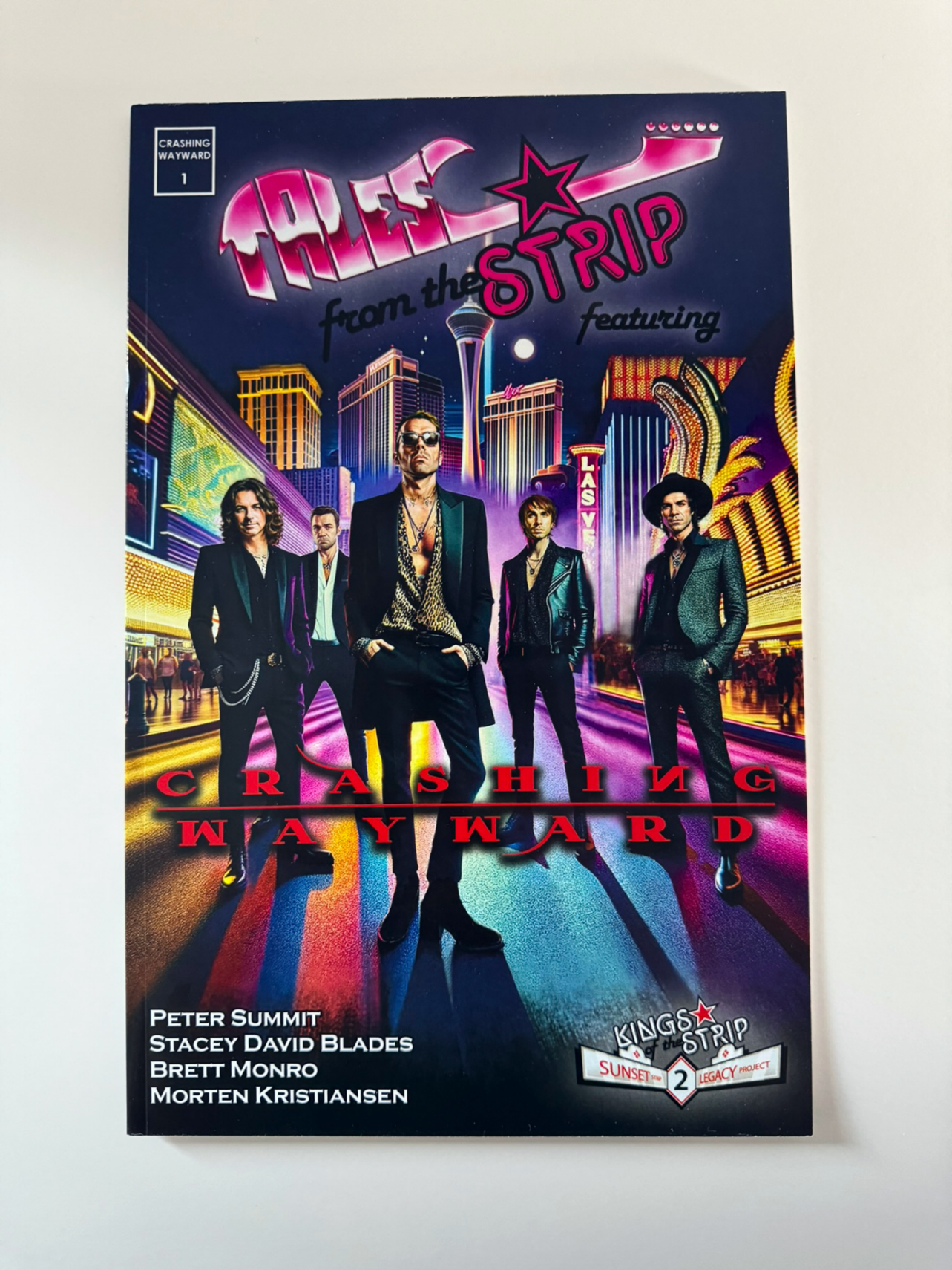 Tales from the Strip featuring Crashing Wayward is the second volume in our “Legacy” series that celebrates the artists of the Sunset Strip era of music. Las Vegas sensations, Crashing Wayward has three “comic-ized” stories in this volume as well, there is a short story featuring The Scene. Crashing Wayward features Stacey David Blades on guitar, formerly of the L.A. Guns.